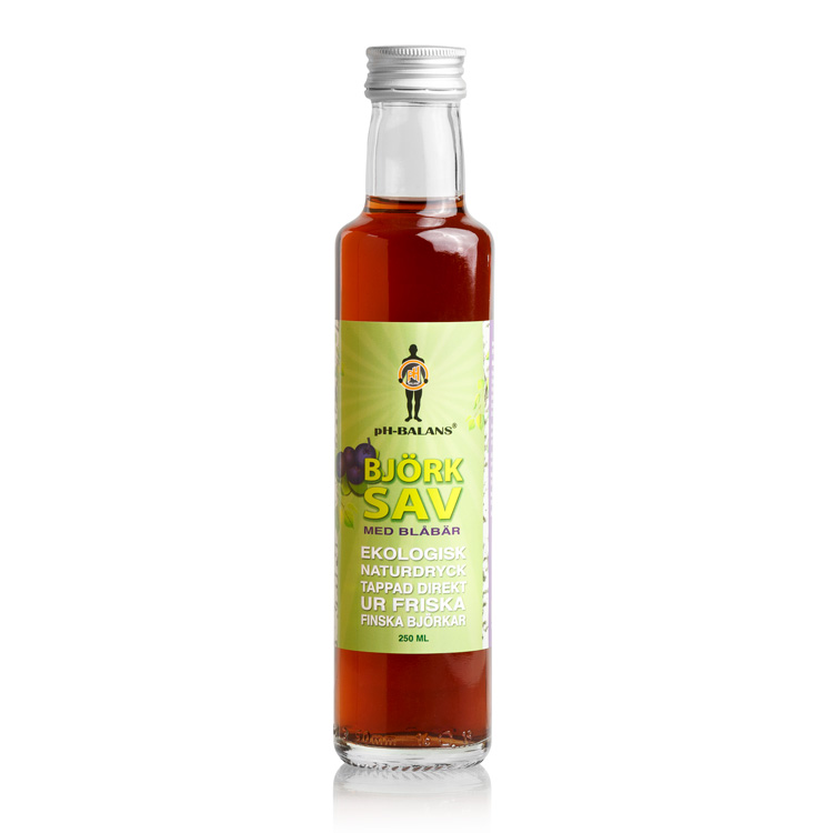 Björksav med mild smak av blåbär. Vår ekologiska björksav utvinns ur friska björkar med växtplats i norra Finland. Vi kallar den med sin söta och milda smak för naturens egen hälsodryck.
